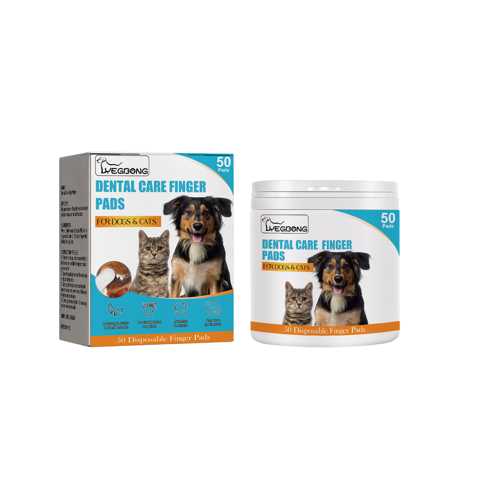 Our dog and cat dental gloves contain glycerin, peppermint extract, baking soda. It can effectively fight against pet oral bacteria, reduce the formation of pet oral plaque, and protect the oral health of pets. Its use is very simple: first of all, before the first use, it is recommended to let the pet smell the wet wipes, lick it to avoid pet discomfort, then open the package, take out the wet wipes, put on the finger cover, gently open the pet's mouth, gently clean the upper and lower two rows of teeth and both sides of the inside and outside, brush the pet 1-2 times a day, you can achieve better results. After use, you can massage the gums, fresh breath, remove tooth stains, gradually reduce tartar and plaque, so that your pet can better enjoy a healthy mouth.